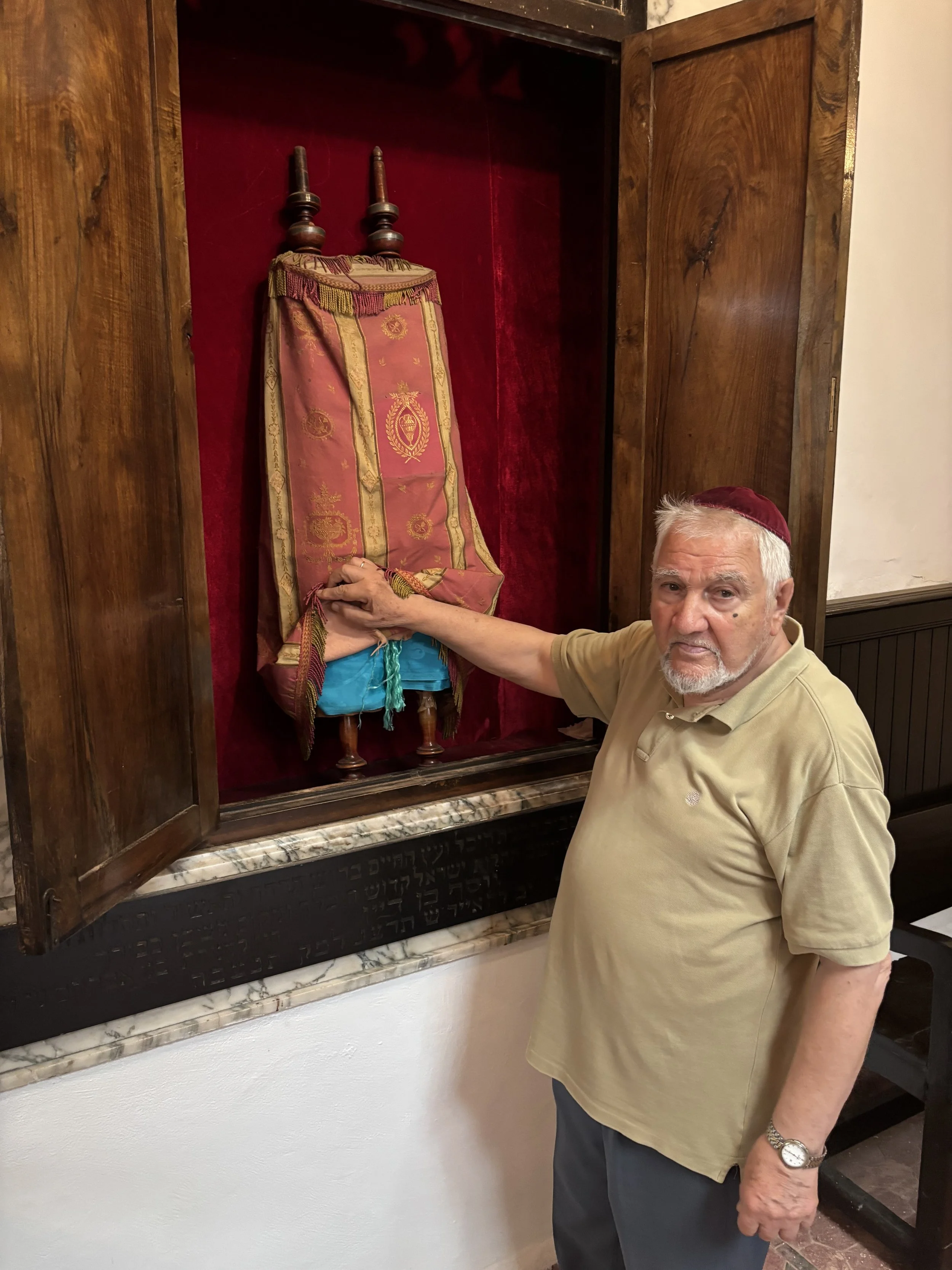 Leo, a native of Tetouan and one of seven remaining Jews in the city, proudly displays the synagogue’s centuries old Torah